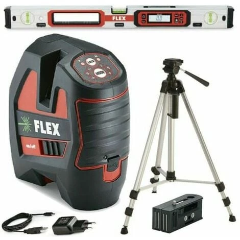Un laser a faisceaux croises autonivelant avec une ligne laser horizontale et deux lignes verticales a un angle de 90? plus aplomb (laser vert), commutable.