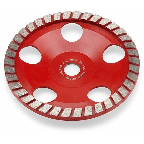 - Turbo-Jet meule avec un taux d´élimination optimale. Le large éventail de segments de diamants fournit une performance d´exploitation considérablement plus silencieuse et un motif de ponçage plus attrayant. Idéal pour surface de meulage sur des substrats minéraux.