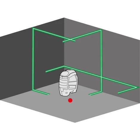 - Avec une ligne laser horizontale et 2 lignes verticales en crois de 90° plus perpendiculaire, séparement utilisable